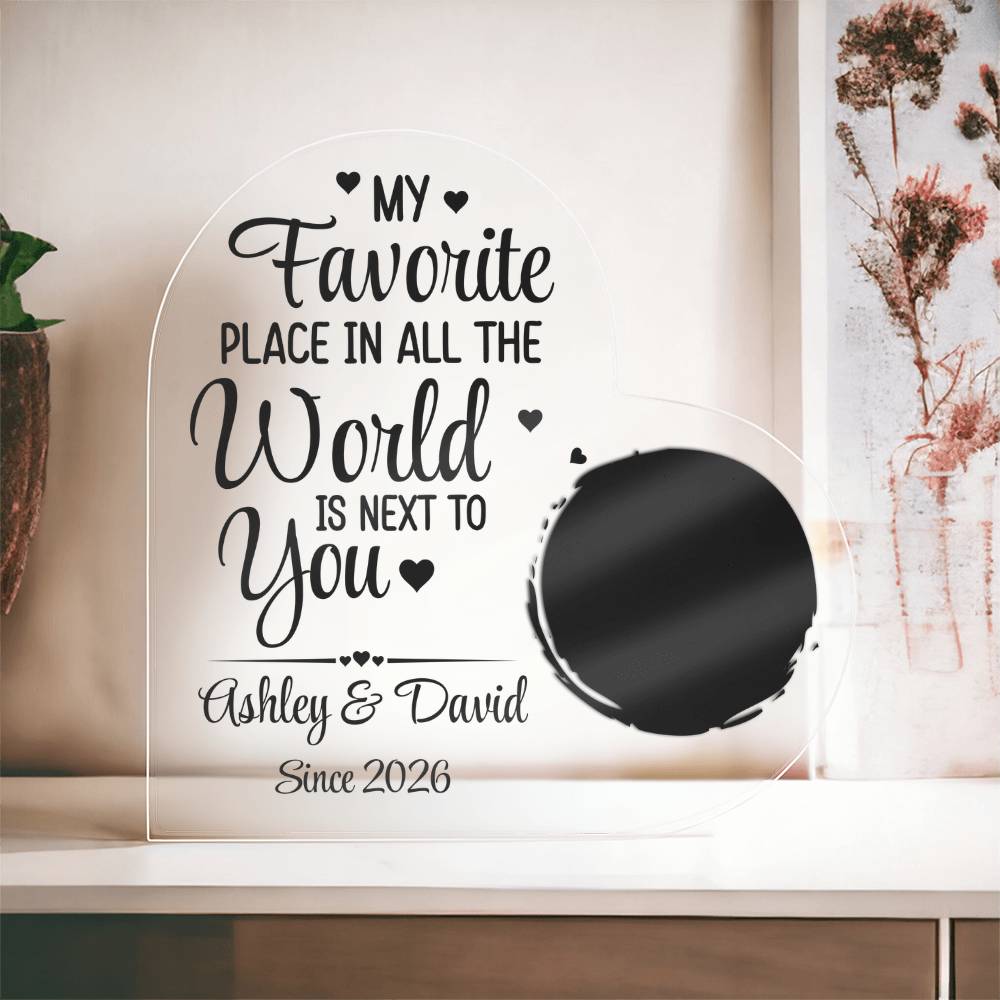 Personalized Heart Acrylic Plaque – Your Favorite Place Is Right Next to You